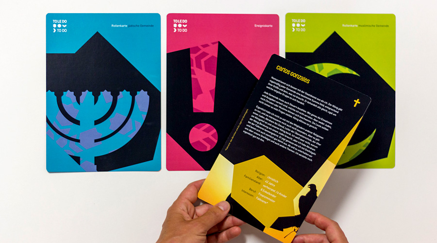 Die Formen sind so komponiert, dass sie zeitgemäß, fast poppig wirken, aber trotzdem den Brückenschlag zu einem harmonischen Miteinander unterschiedlicher Religionen im Toledo des 13. Jahrhundert schlagen. Genau dieser Inhalt ist auch die Idee des Planspiels, das für Schülerinnen und Schüler ein friedvolles Miteinander trainiert.