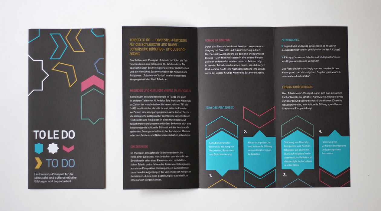 Orientiert an der Formensprache der maurischen Kunst entwickelte kursiv ein Logo für die Spieleausstattung des Planspiels Toledo to do.